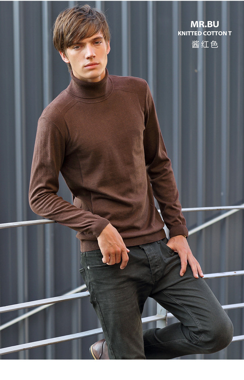 Ông vải đan t mùa thu và mùa đông mô hình cao cổ áo dài tay áo len t- áo sơ mi nam đan áo len