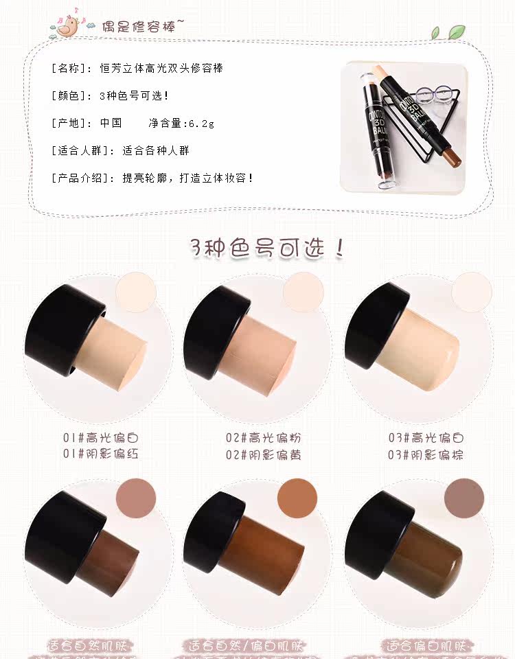 Đúp đầu sửa chữa thanh che giấu ba chiều có độ bóng cao đôi đầu sửa chữa que bóng dính sáng stick silhouette mặt sửa chữa công suất bút Kem che khuyết điểm