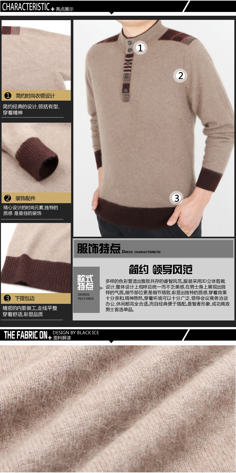 Cao cấp nhung vòng cổ người đàn ông áo len trung niên dày ấm áp ấm áp áo len cashmere nửa cao cổ áo lỏng kích thước lớn cha Áo len Cashmere