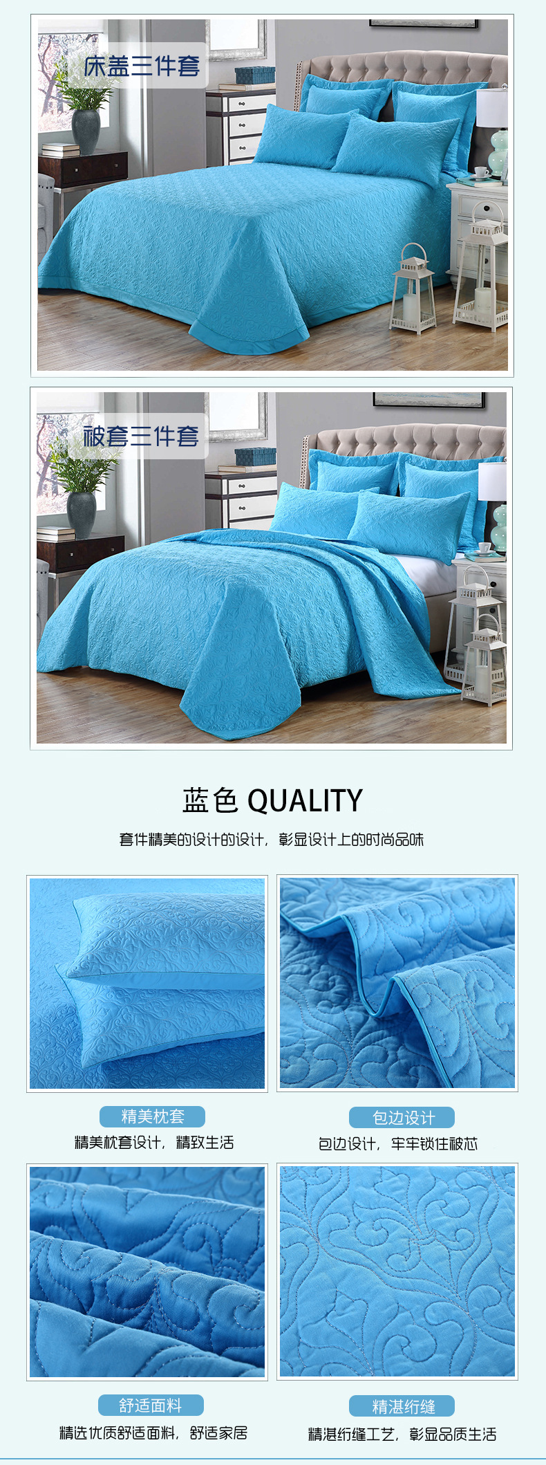Màu rắn chất lượng cao twill bông rửa quilting được thiết lập của bốn bộ trải giường ba bộ dày sheets quilt cover Trải giường