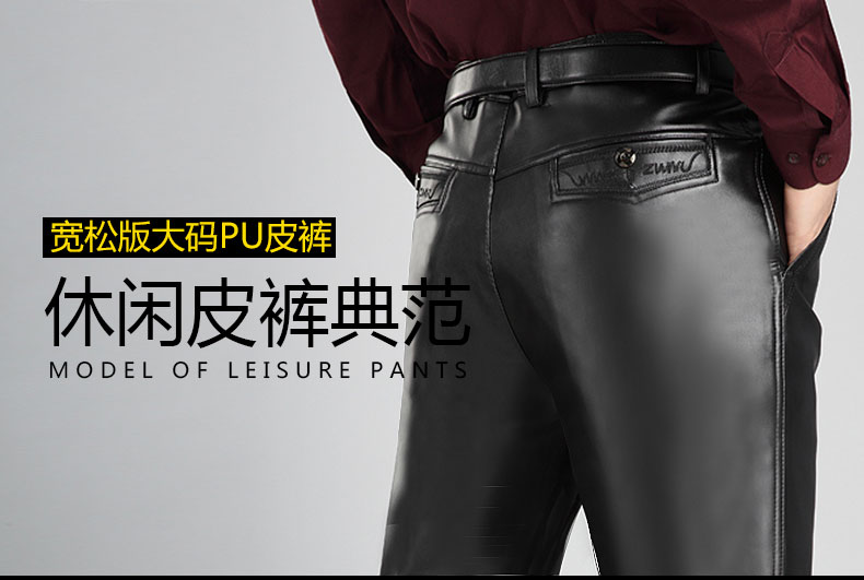 Quần da của nam giới trung và cũ tuổi thường lỏng PU giả da kích thước lớn quần thẳng không thấm nước và oilproof da xe máy quần