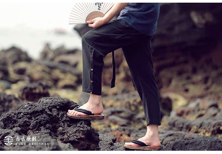 古 古 新 原创 gió Trung Quốc bông vành đai khóa giản dị chín quần retro Trung Quốc phong cách linen harem quần nam quần áo