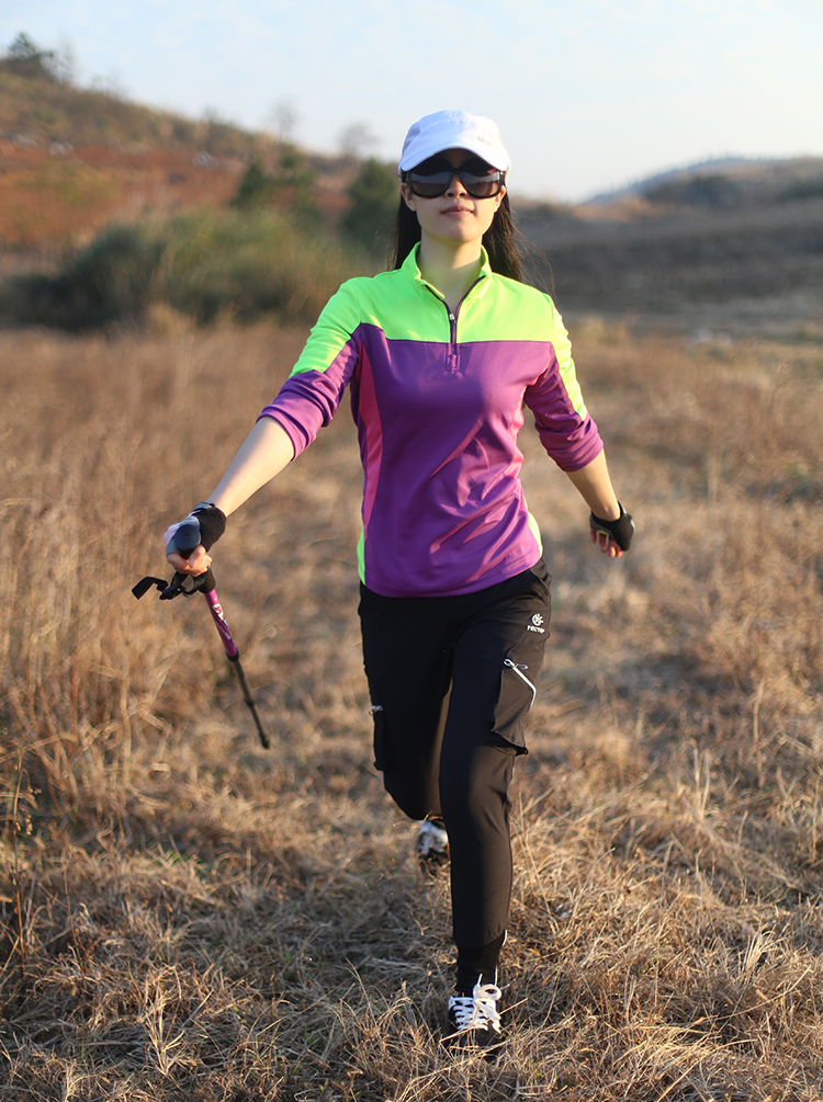 Mùa hè của phụ nữ thể thao ngoài trời dài tay T-Shirt nhanh khô quần áo đứng cổ áo đi bộ đường dài đi bộ đường dài tập thể dục mồ hôi thấm mồ hôi kem chống nắng quần áo Quần áo ngoài trời