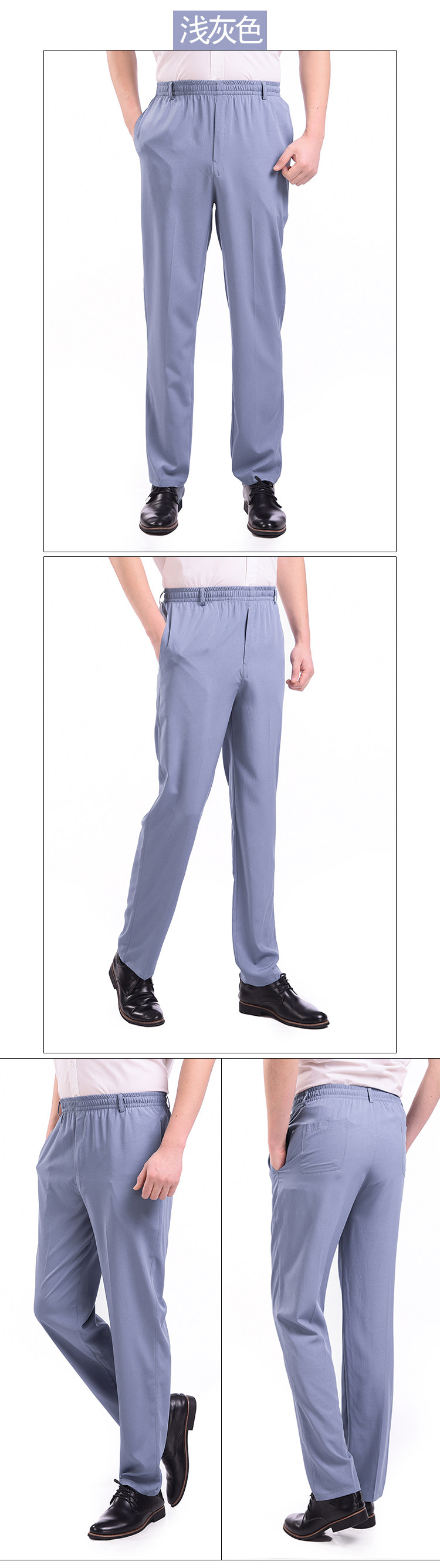 Cha quần nam mùa hè trung niên siêu mỏng băng lụa đàn hồi thắt lưng quần âu trung niên kích thước lớn lỏng quần Quần tây thường