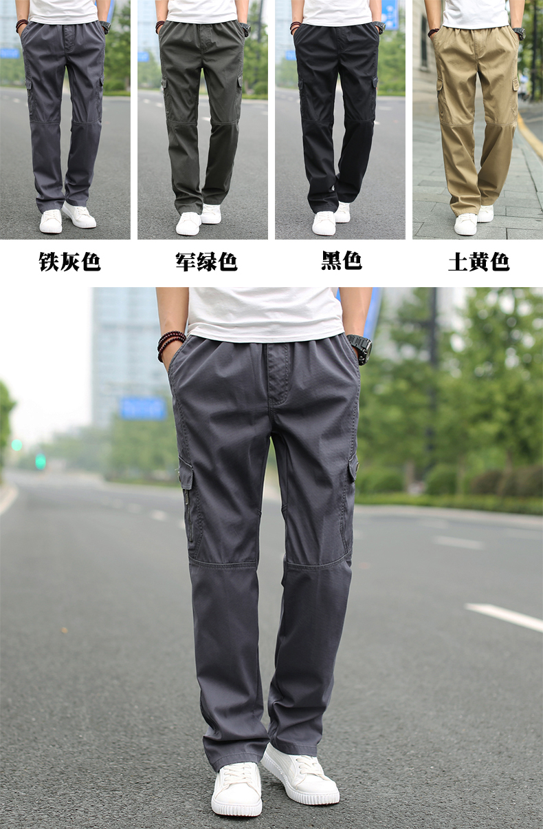 Mùa hè thanh niên thẳng thể thao quần ngoài trời quần âu nam kích thước lớn lỏng overalls nam quần đa túi quần Quần tây thường