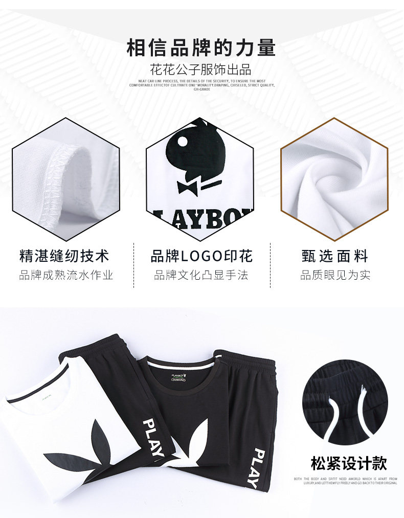 Playboy mùa hè mới của nam giới xu hướng Hàn Quốc mỏng hai mảnh nam ngắn tay áo đan thể thao giản dị thiết lập Bộ đồ
