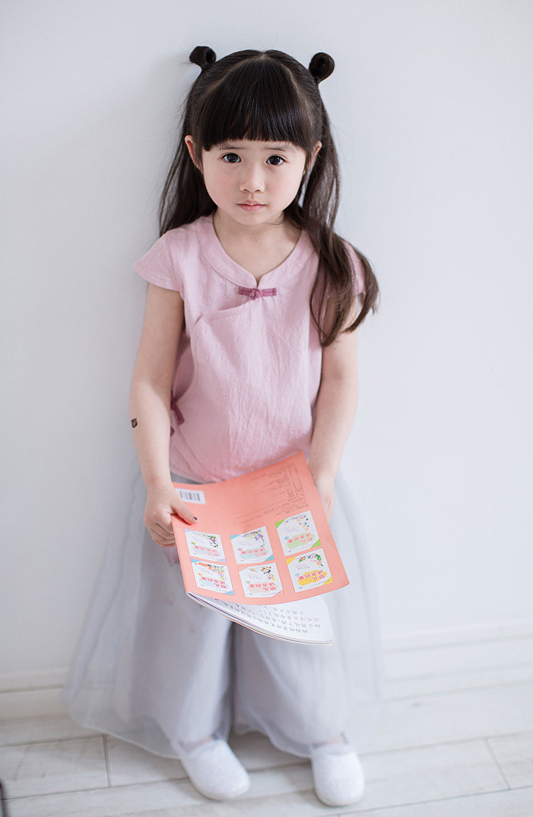 Phong cách trung quốc 2018 mùa hè nữ kho báu retro ngắn tay bé sợi mềm quần rộng chân hai mảnh cha mẹ và con trang phục Hanfu cô gái Trang phục dành cho cha mẹ và con