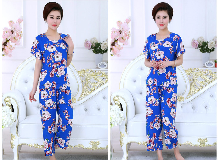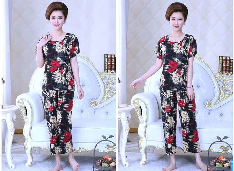 Đồ ngủ phụ nữ mùa hè kích thước lớn bông lụa nhà dịch vụ trung và cũ tuổi bông lụa bông phụ nữ đồ ngủ mùa hè ngắn tay áo phù hợp với