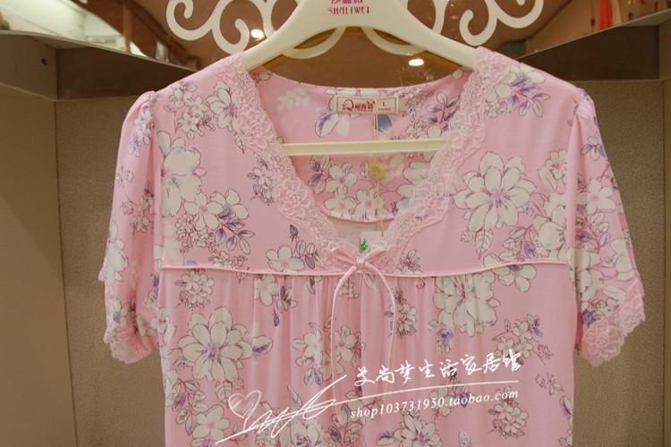 Li và Qian 2018 mùa hè mới đích thực nữ cao quý ngắn tay siêu mềm đồ ngủ sợi tre một mảnh ăn mặc nhà dịch vụ