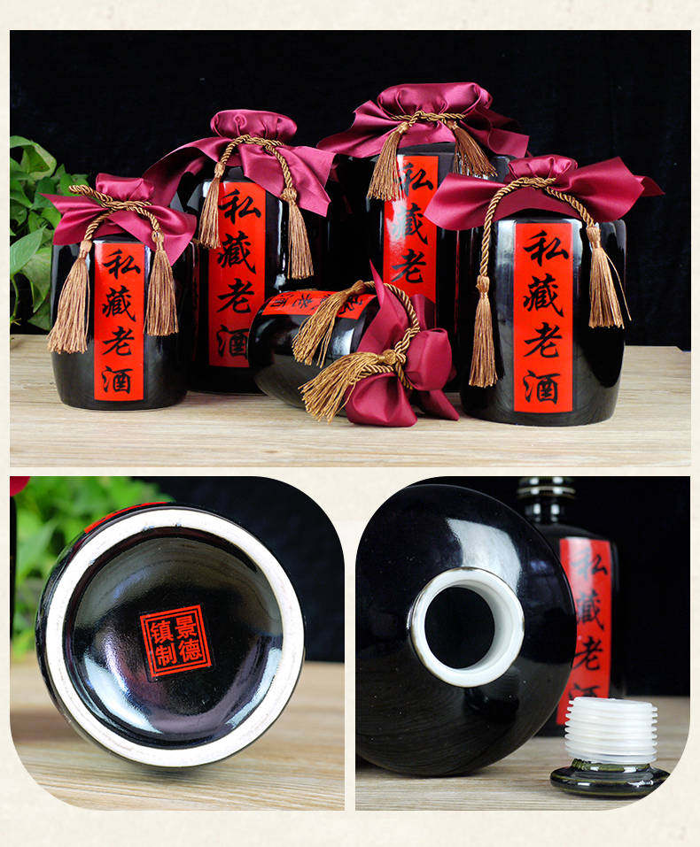 Jingdezhen gốm chai rượu jar 1 kg 2 kg 3 kg 5 kg 10 kg nạp rượu gốm jar con dấu đen men nồi rượu vang Rượu vang