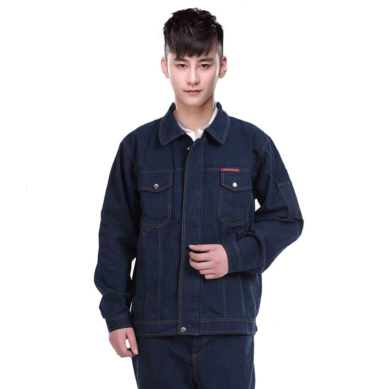 Denim yếm đặt hàn quần áo làm việc sửa chữa máy tự động sửa chữa quần áo làm việc áo khoác denim dày bảo hiểm lao động quần áo