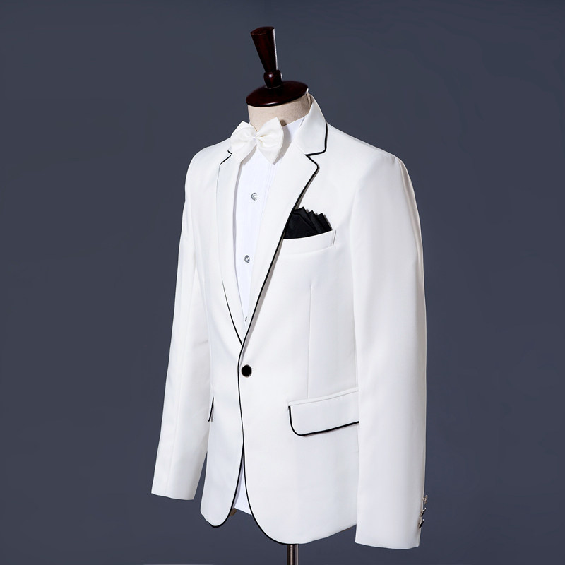 Ảnh của nam giới phù hợp với hình ảnh phù hợp với váy trang phục sân khấu máy chủ ca sĩ hội nghị thường niên trang phục trắng với đường viền màu đen Suit phù hợp