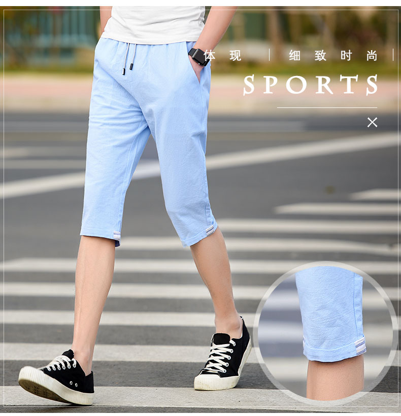 Quần short nam cắt quần Teen rắn màu quần mỏng mùa hè bông năm điểm Casual Elastic eo ống túm