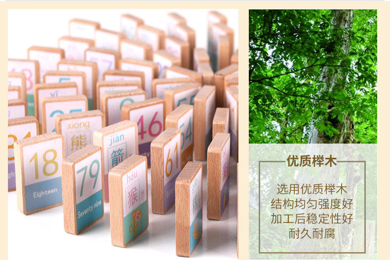 100 hai mặt kỹ thuật số Trung Quốc nhân vật dominoes trẻ em của đồ chơi giáo dục bé biết chữ biết chữ khối gỗ Khối xây dựng