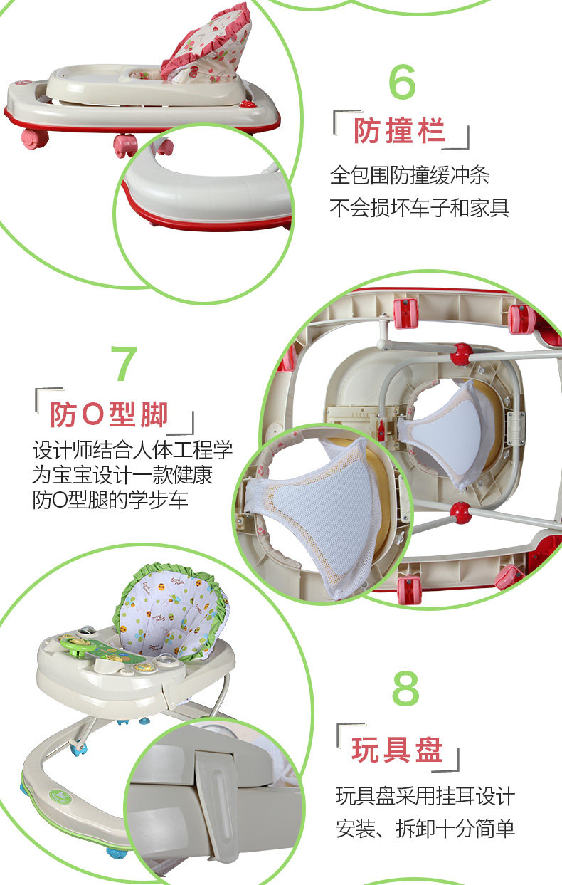 Trẻ sơ sinh và trẻ em chống rollover có thể gập lại có thể ngồi với âm nhạc chống mùa thu walker bé 6 7-18 tháng Xe đẩy / Đi bộ