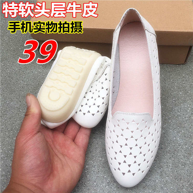 Mùa hè phẳng mẹ giày dép nữ phẳng với lỗ rỗng giày giản dị mềm dưới phụ nữ mang thai giày đơn màu trắng giày y tá Sandal