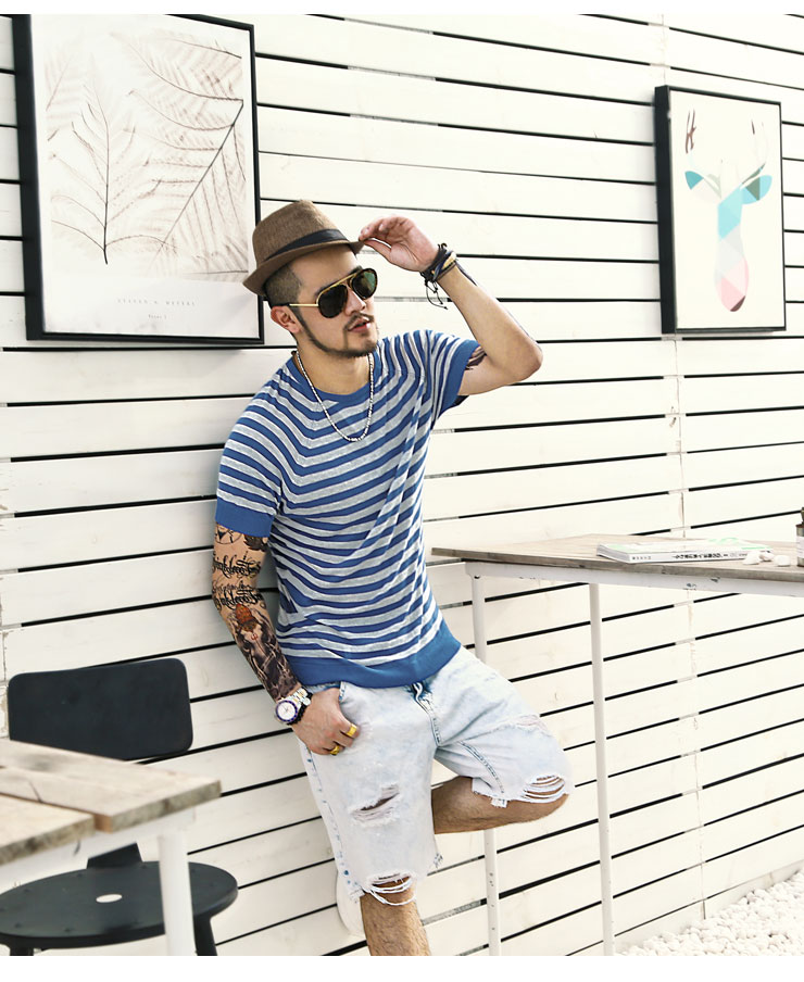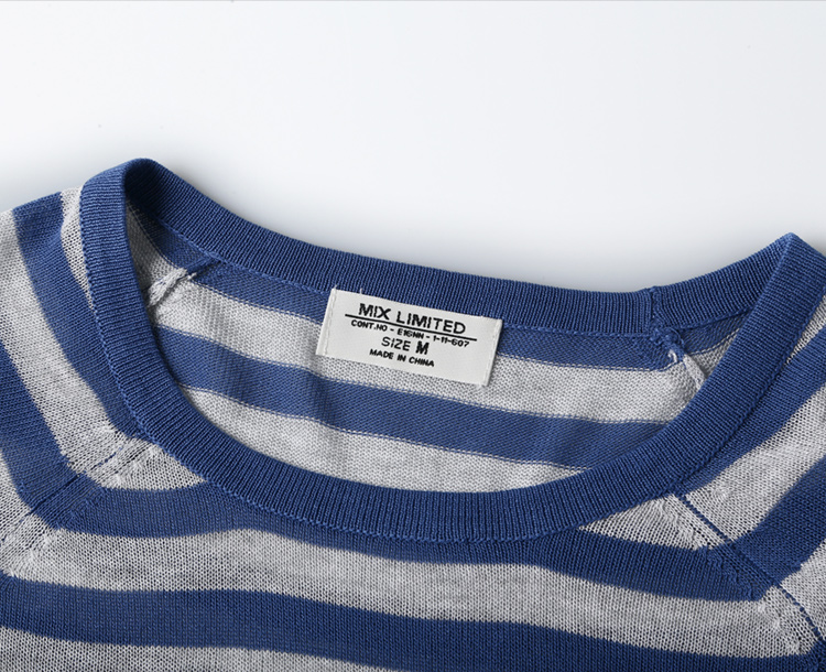 2018 mùa hè người đàn ông mới của raglan tay áo sọc áo len cổ tròn ngắn tay văn học nam biển linh hồn áo triều J733