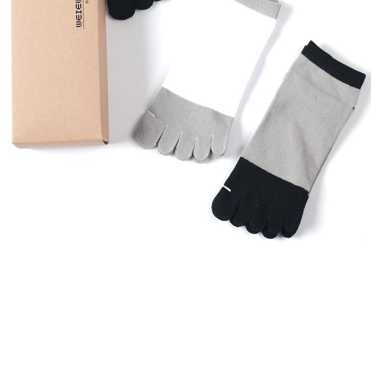 Năm ngón tay vớ nam cotton điểm vớ phần mỏng ống ngắn mùa xuân và mùa hè cá tính mồ hôi mùi khử mùi vớ ngón chân 5 đôi hộp quà tặng