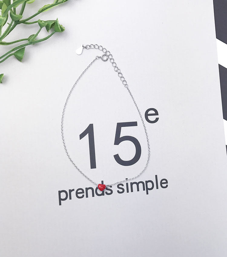 925 sterling bạc trái tim màu đỏ tình yêu hình trái tim vòng chân nữ Hàn Quốc phiên bản nhỏ tươi ngọt ngào mùa hè vòng chân món quà không gây dị ứng Vòng chân