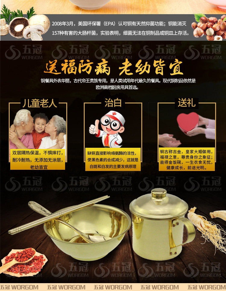 Đồng bát đồng muỗng đũa đồng đồng nguyên chất trắng bão buster thìa đồng ba mảnh handmade cup đồng cup đồng bộ đồ ăn bằng đồng Đồ ăn tối