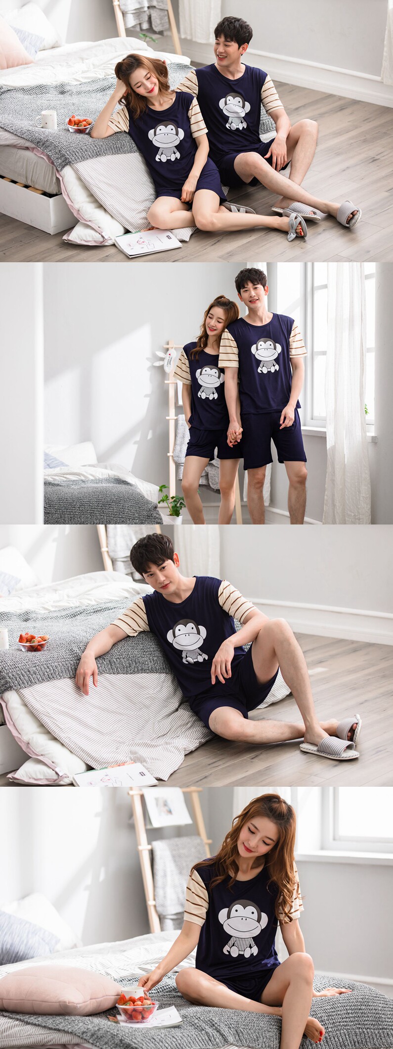 Hàn quốc phiên bản của vài bộ đồ ngủ phụ nữ mùa xuân và mùa hè phim hoạt hình ngắn tay XL nam giới và phụ nữ dịch vụ nhà giản dị mặc phù hợp với Giống cái