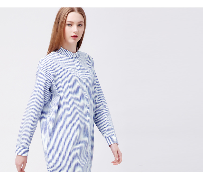 Gỗ cổ buổi tối cừu GMXY2017 mùa thu của phụ nữ new sọc in áo đầm L565620 Sản phẩm HOT