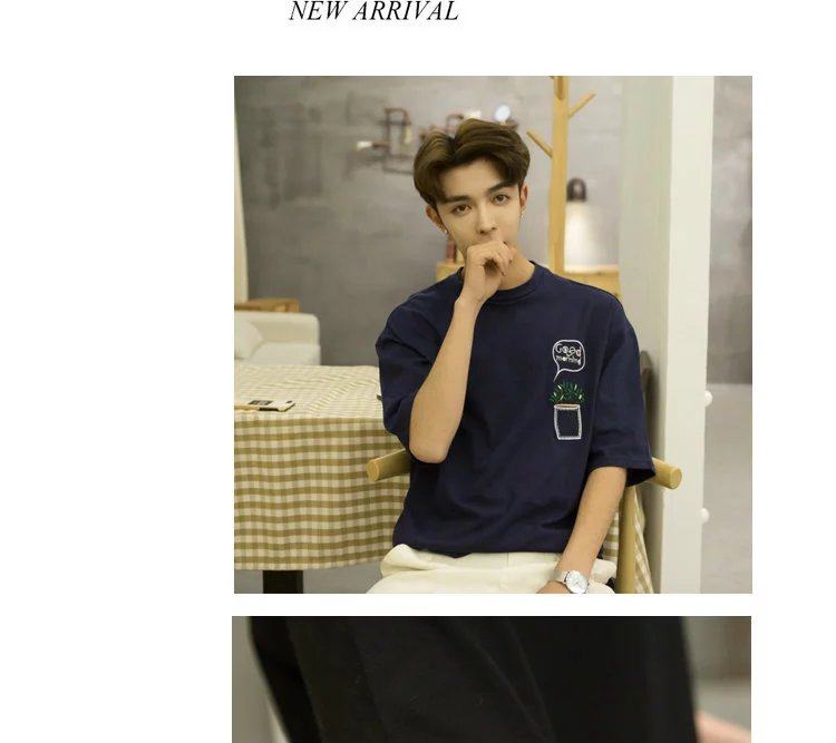 Mùa hè lỏng lẻo năm điểm tay áo T-Shirt nam dài tay 7 điểm Hàn Quốc phiên bản của bảy điểm tay áo trong tay áo xu hướng chất béo ngắn tay quần áo Áo phông dài