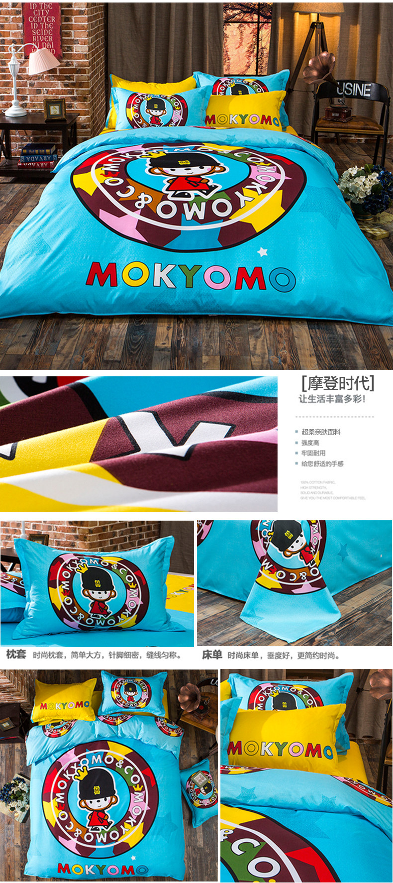 Phim hoạt hình 3d lớn màu đen và trắng sọc bốn mảnh xu hướng giường, bộ đồ giường quilt cover tờ thời trang ba mảnh Bộ đồ giường bốn mảnh