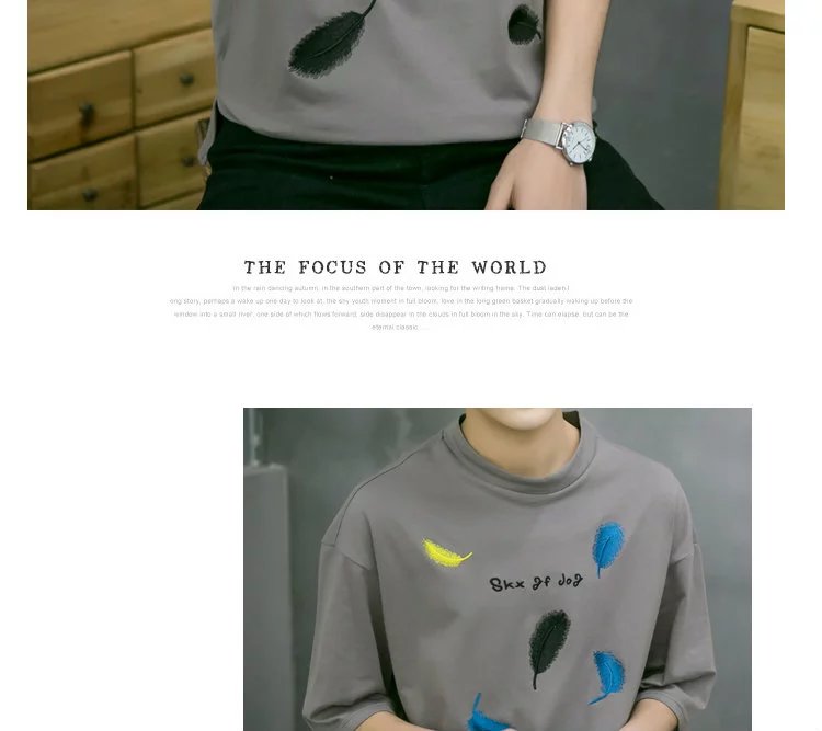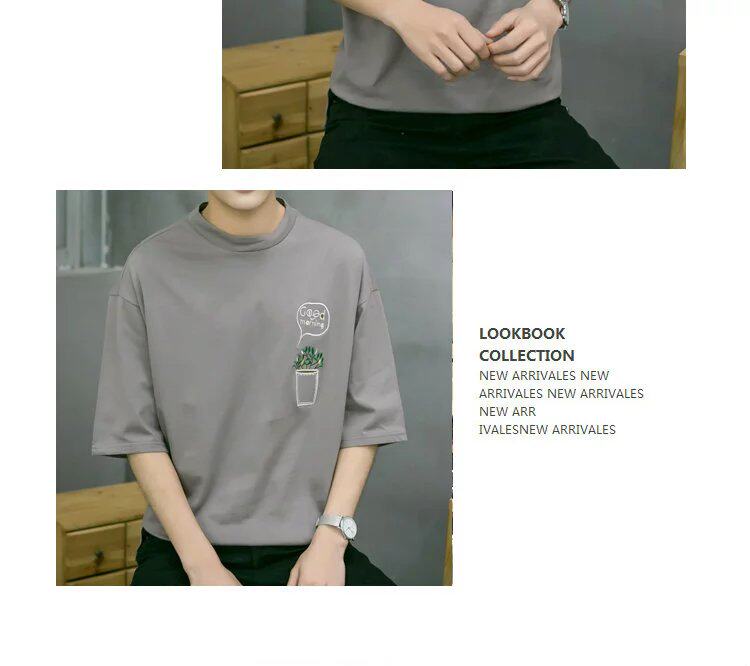 Bảy điểm tay áo của nam giới t-shirt Hàn Quốc phiên bản của sinh viên xu hướng cá tính lỏng 7 điểm trong áo dài tay 5 điểm quần áo ngắn tay Áo phông dài