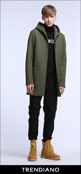 TRENDIANO nam mùa thu và mùa đông dài trùm đầu màu rắn áo len lông 3JC334606P