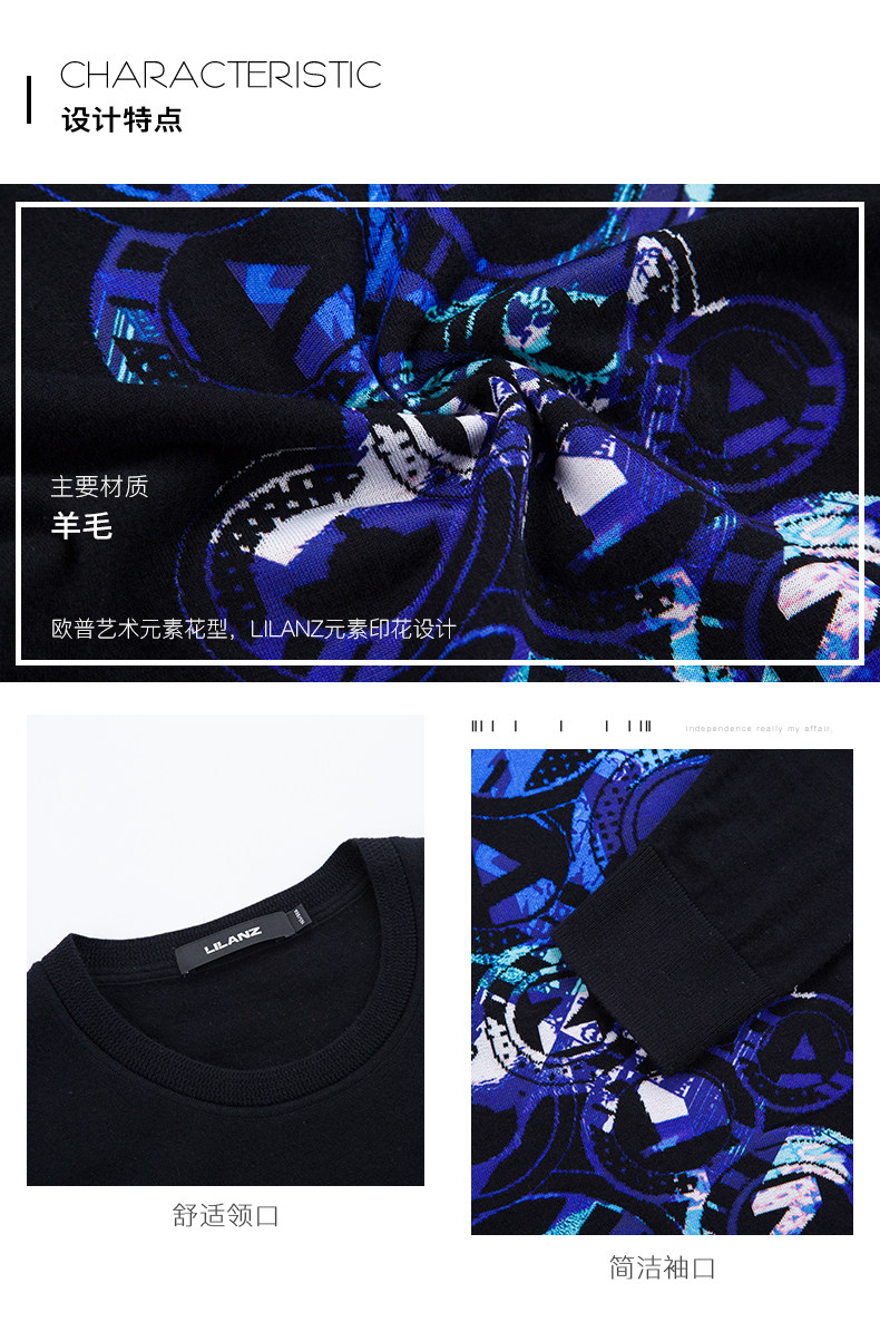 Lilanz Lilang thời trang áo len mùa xuân và mùa thu cá tính in áo len áo len nam cổ tròn 6QMS0152S Áo len