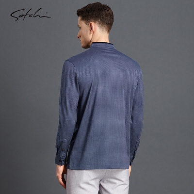 Satchi Sha Chi lụa dài tay T-Shirt nam kinh doanh bình thường đứng cổ áo T-Shirt điểm sóng đan t-shirt cotton