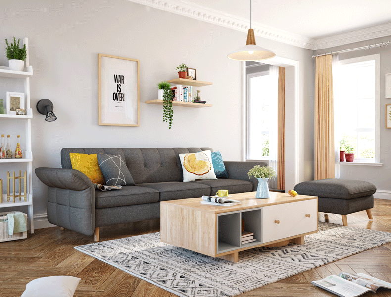 Lin của gỗ Bắc Âu đơn giản màu gỗ tủ TV bàn cà phê bộ hoàn chỉnh phù hợp với đồ nội thất phòng khách BR4M Bộ đồ nội thất