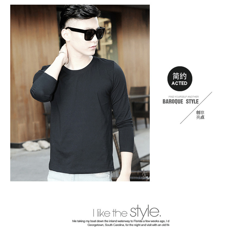 2017 mùa hè và mùa thu dài tay t-shirt nam thanh niên quần áo nam mùa thu quần áo vòng cổ new solid color kích thước lớn cotton t-shirt