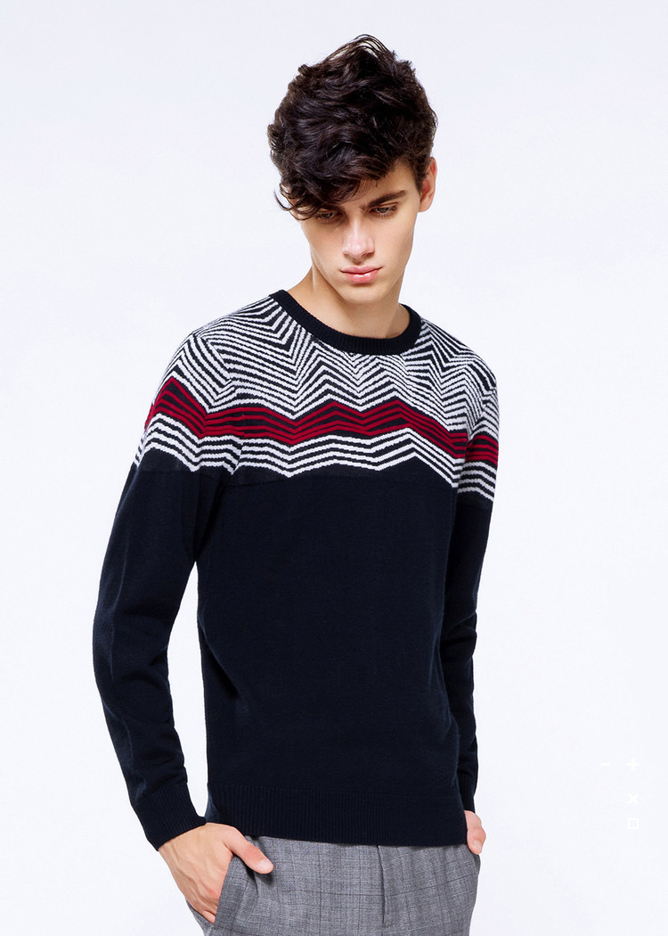 Carbine nam lượn sóng vòng cổ áo len cao cổ dài tay áo len dệt kim mùa thu mùa đông b