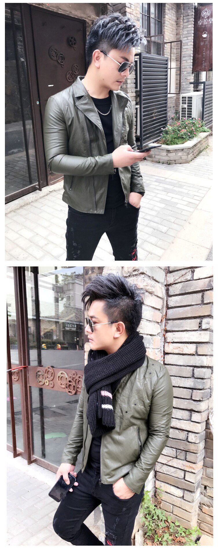 2018 mới ngắn thêu in ấn Hàn Quốc phiên bản của tự trồng xe máy da nam dây kéo mùa xuân và mùa thu áo của nam giới thủy triều Quần áo lông thú