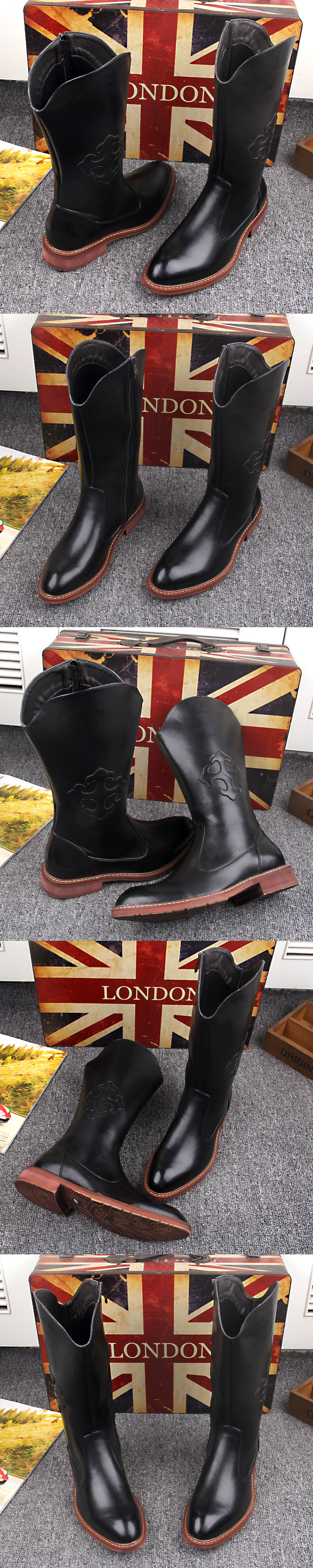 Dài khởi động da hiệp sĩ của nam giới khởi động cao khởi động cưỡi khởi động xu hướng của nam giới giày diễu hành giày khởi động mắt cá chân khởi động Mông Cổ khởi động Giày ống