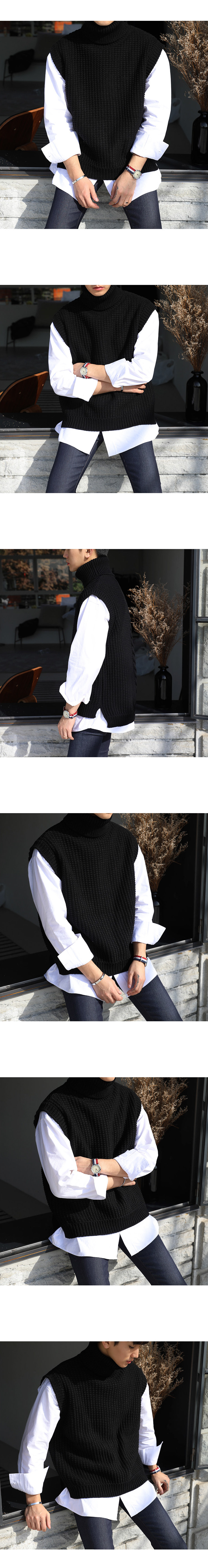 MRCYC Hàn Quốc phiên bản của cao cổ áo đan áo len nam lỏng đầu hoang dã side chia ngã ba trở lại twist dệt vest
