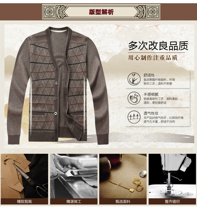 Trung niên áo len nam cardigan daddy cộng với nhung áo len dày áo len ông già ông nội áo len mùa thu và áo khoác mùa đông Áo len