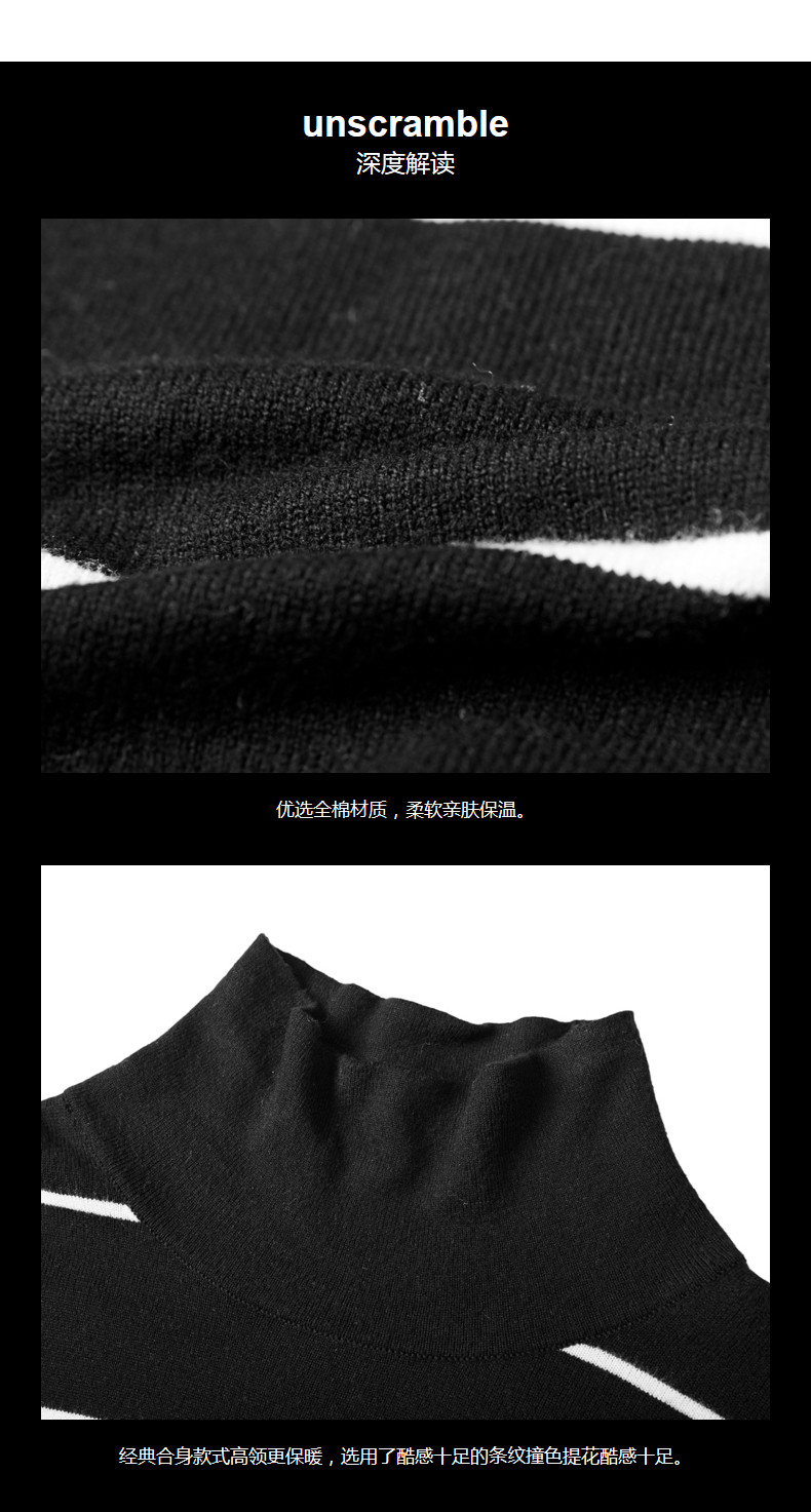 Lilbetter nam cao cổ áo len Hàn Quốc Slim cao cổ áo len sọc đẹp trai người Anh áo sơ mi nam Áo len cổ tròn