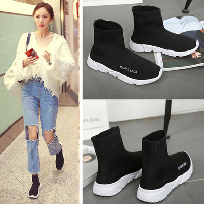 Dày dưới vớ đàn hồi giày Hàn Quốc giày thể thao thoáng khí giày thường mùa hè mới 2018 đen hoang dã giày cao Giày cao gót