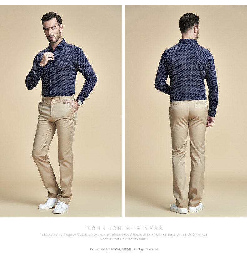 Youngor Youngor kinh doanh bình thường của nam giới Mercerized bông vòng dài tay áo T-Shirt 4D24 Áo phông dài