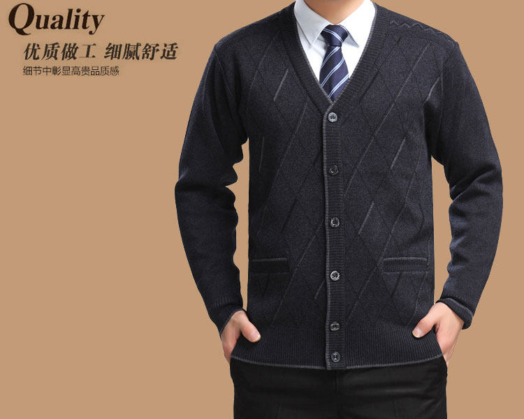 Trung niên và người già V-Cổ áo len dày áo len áo len đan áo len cardigan cha ông áo khoác nam Cardigan