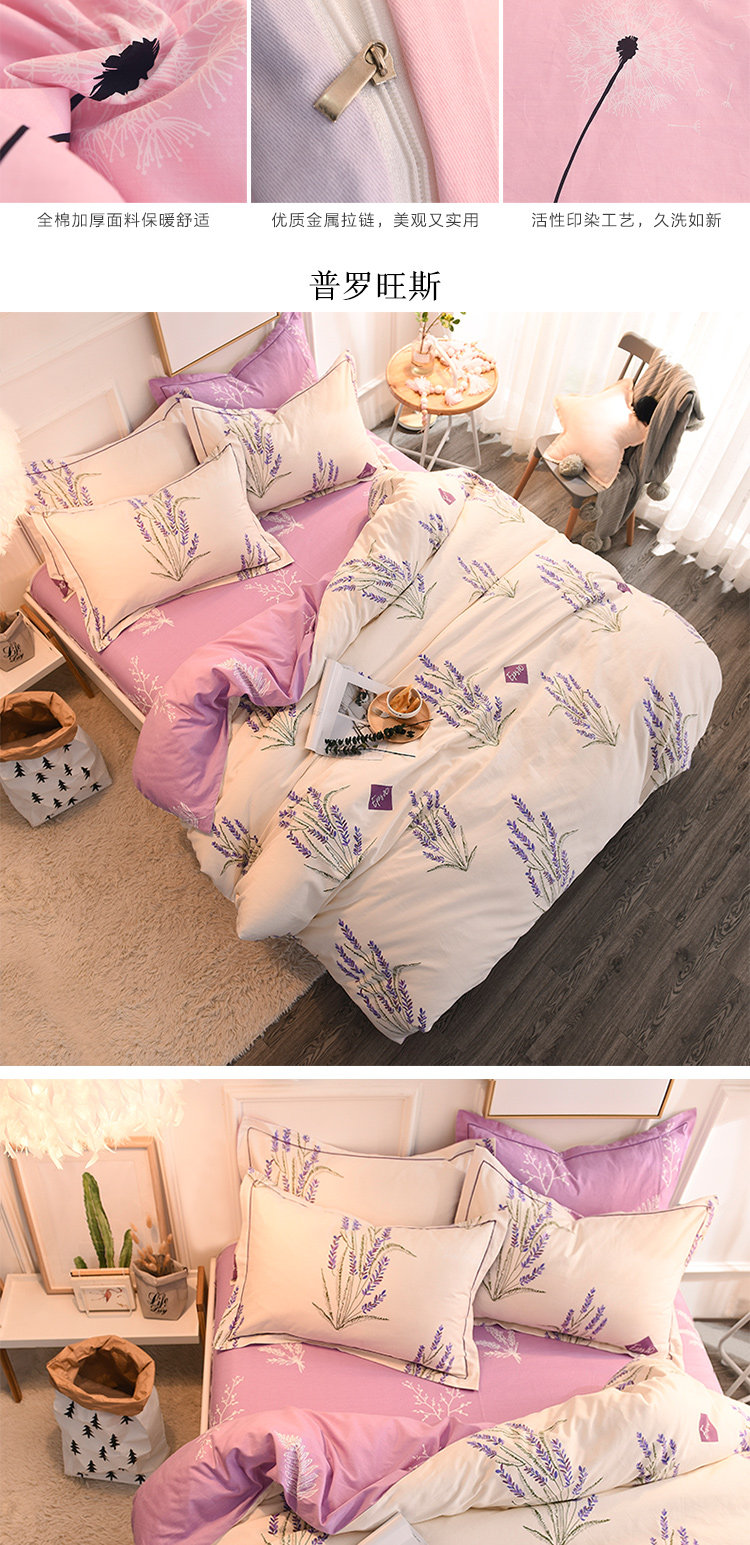 Bắc Âu đơn giản bông dày chà nhám 4 bốn bộ bông ấm sinh viên Hàn Quốc 3 ba bộ giường mùa thu và mùa đông 笠 Bộ đồ giường bốn mảnh