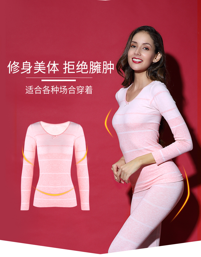熳 洁儿 mùa xuân và mùa hè phụ nữ đồ lót nhiệt đặt phần mỏng sọc đầu vòng cổ mỏng đáy Qiuyi Qiuku Phù hợp với nóng lên