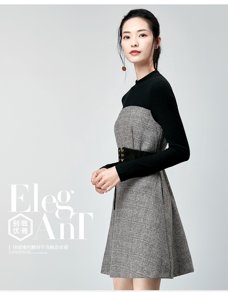[Giá mới 99 nhân dân tệ] 2018 mùa xuân mới Hàn Quốc phiên bản của mạng trong khâu váy hit màu houndstooth đầm
