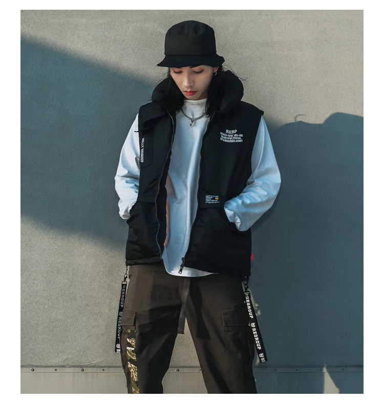 Ma mặt thủy triều thương hiệu có thể tháo rời tay áo vest bông áo ve áo bông phù hợp với nam giới và phụ nữ Nhật Bản bóng chày áo sơ mi dày áo mùa đông Áo vest cotton