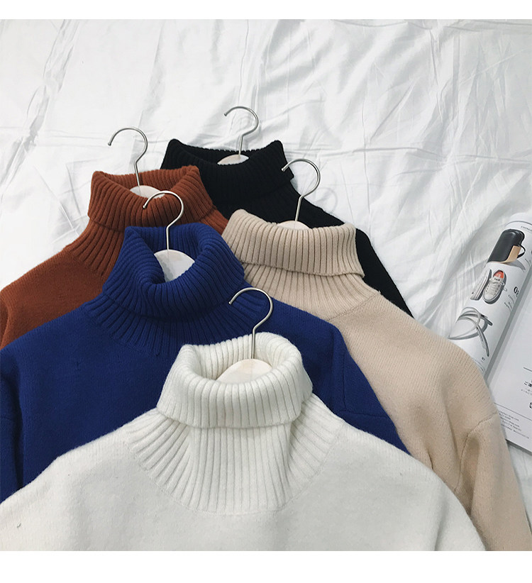 Chất lượng tốt mùa đông màu rắn dày cao cổ áo len nam xu hướng áo len Hàn Quốc phiên bản của bộ lỏng đáy áo len Hàng dệt kim
