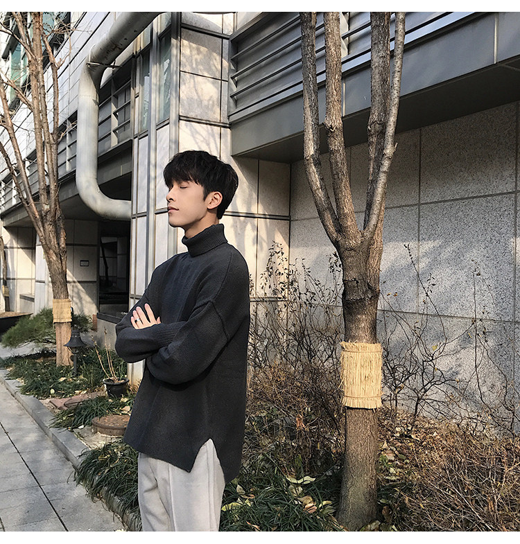 HUALUN nam cao cổ áo len nam mùa xuân và mùa thu Hàn Quốc phiên bản của chic loose đáy mohair áo len ifashion Áo len
