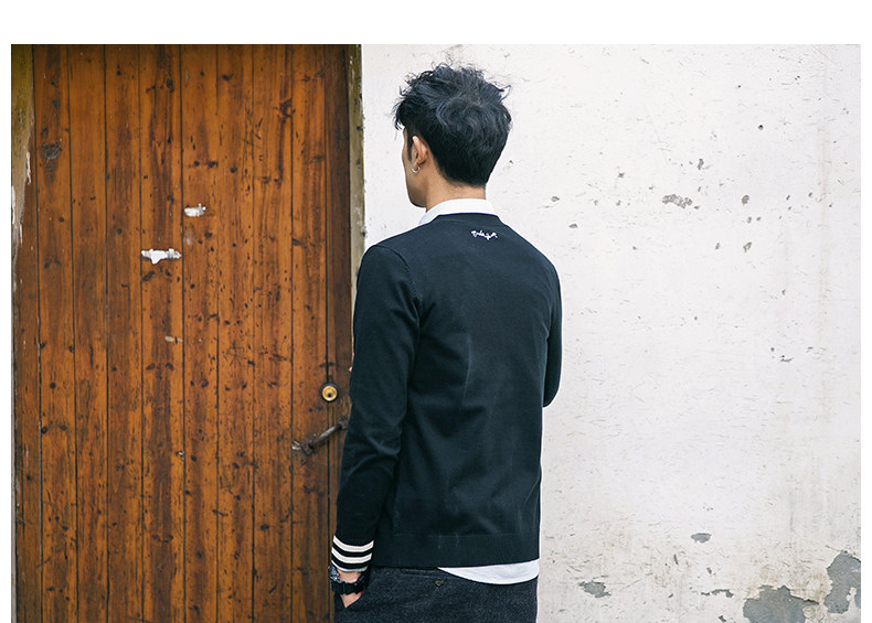 Thiết kế ban đầu 2018 mùa xuân và mùa thu cardigan nam áo len coat phần mỏng sọc thêu nam đan xu hướng điều hòa không khí áo sơ mi